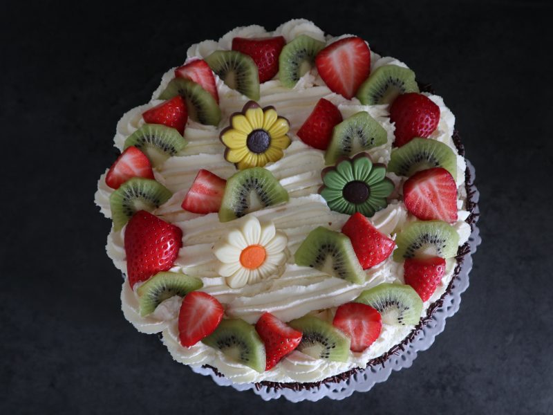 Hier nog een tip van de banketbakker is om de taarten 15 minuten voor het serveren uit de koelkast te halen.